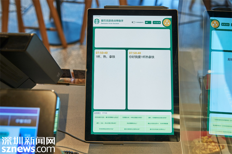 为了实现伙伴和顾客的无障碍交流,门店配备特殊的点单系统,包括用于交流的手写板、手持菜单牌,以及双面点单显示屏、智能语音助手等辅助设备。同时也在吧台布局上进行了调整,比如调低了蛋糕柜的高度、贴心的下沉式凹槽设计等,多维度地帮助伙伴增进与顾客的沟通。