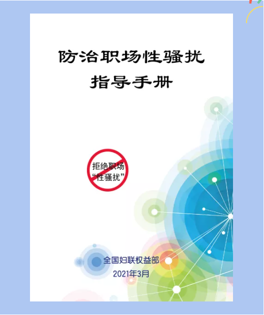 为推动用人单位建立防治职场性骚扰机制,营造平等、文明、安全的工作环境,全国妇联权益部推出了《防治职场性骚扰指导手册》。