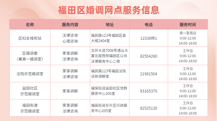 当遇到家事纠纷、妇儿维权……福田区妇联一直在您身旁!记得收藏下面的公益服务指引以备不时之需。