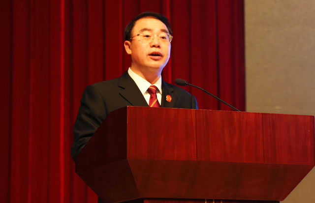 区人民法院院长胡鹰向大会作法院工作报告.jpg