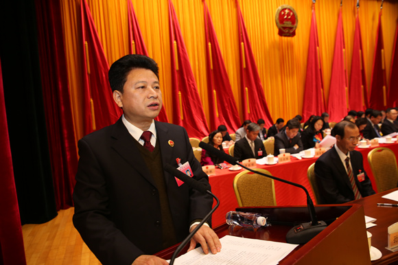 区人民检察院检察长孙爱军向大会作检察院工作报告.