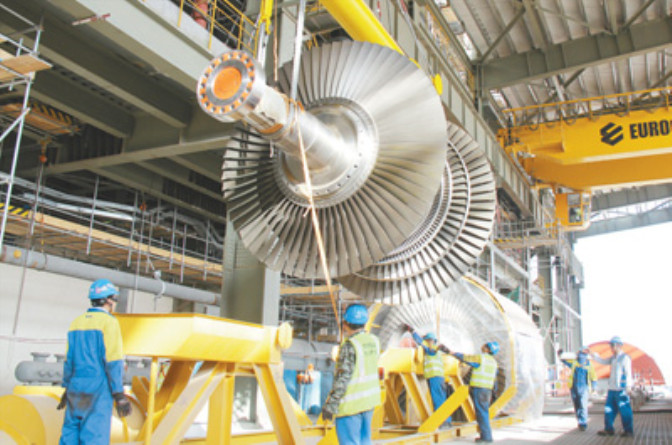 迪拜哈斯彦清洁煤电站是中东地区首座清洁燃煤电站,也是“一带一路”框架下中东地区首个由中资企业参与投资、建设和运营的电站项目。图为工作人员正在安装汽轮机低压缸转子。