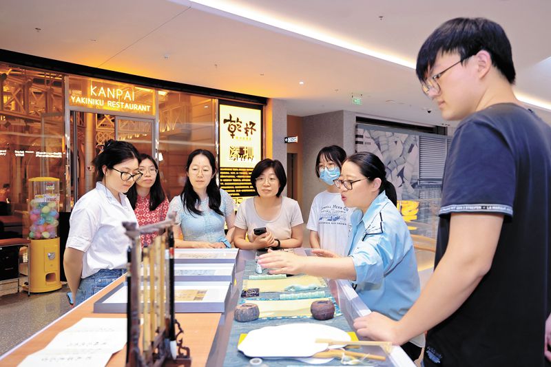 Local artist Tang Ping (2nd R) talks with participants in a calligraphy and poetry event at C Future City in Futian District on June 7. Photos courtesy of C Future City
