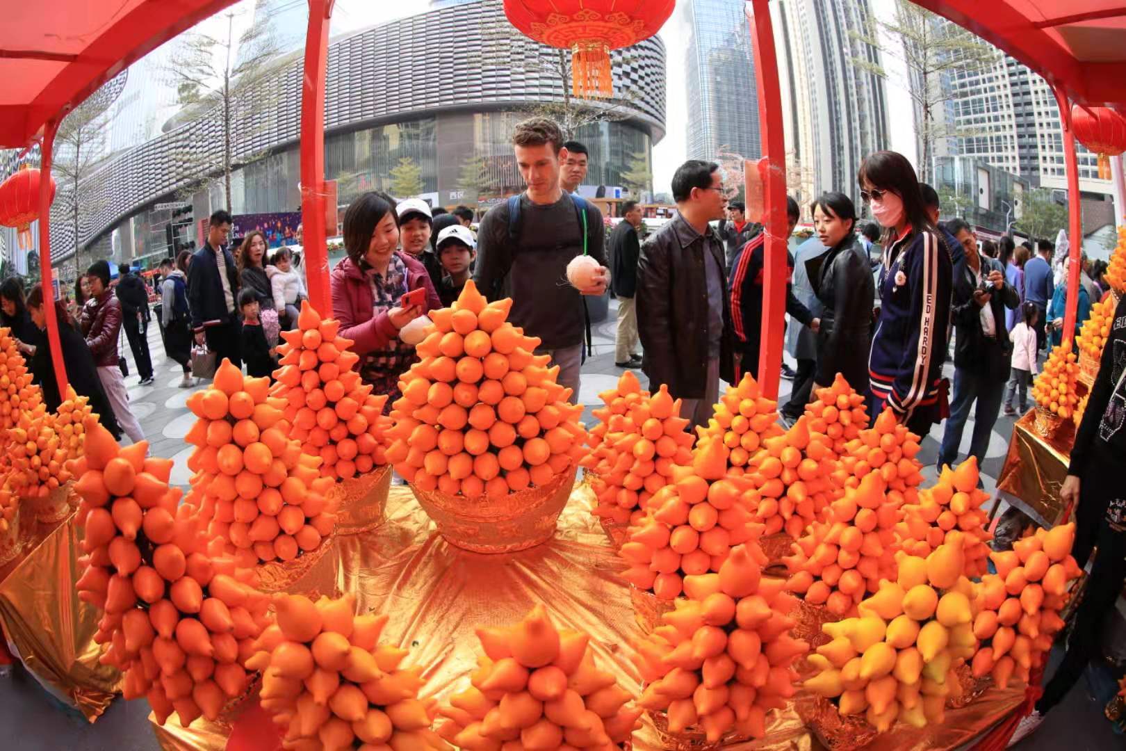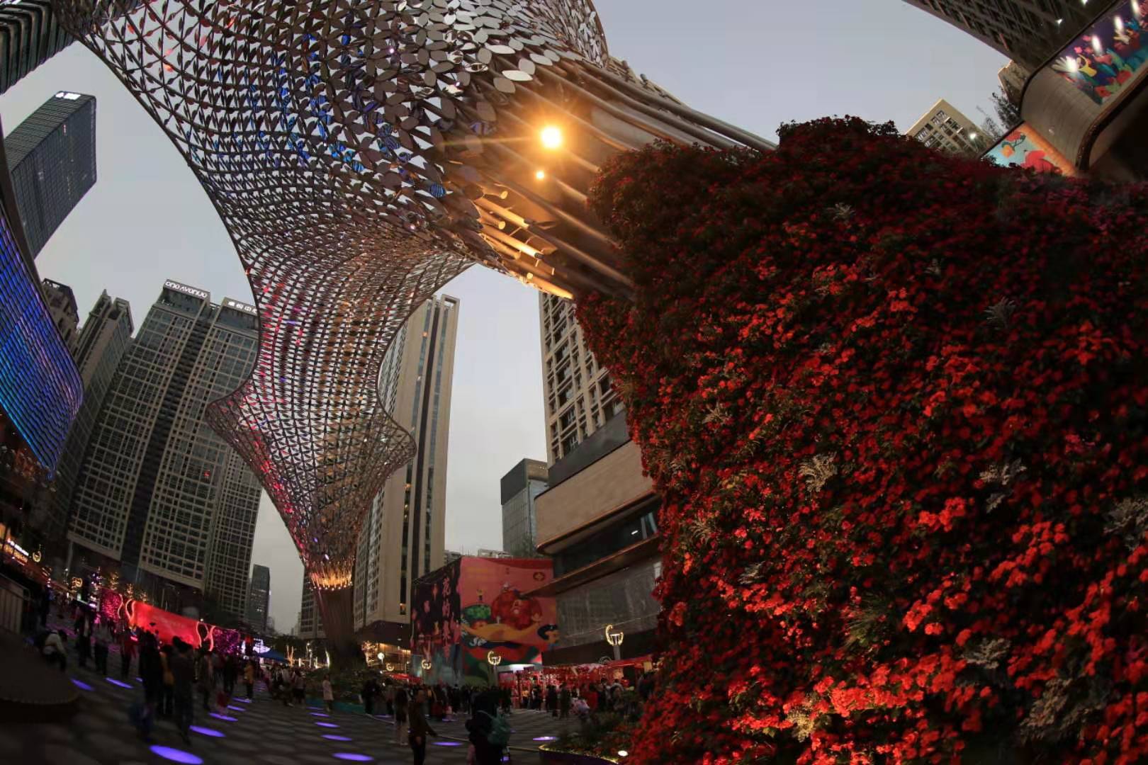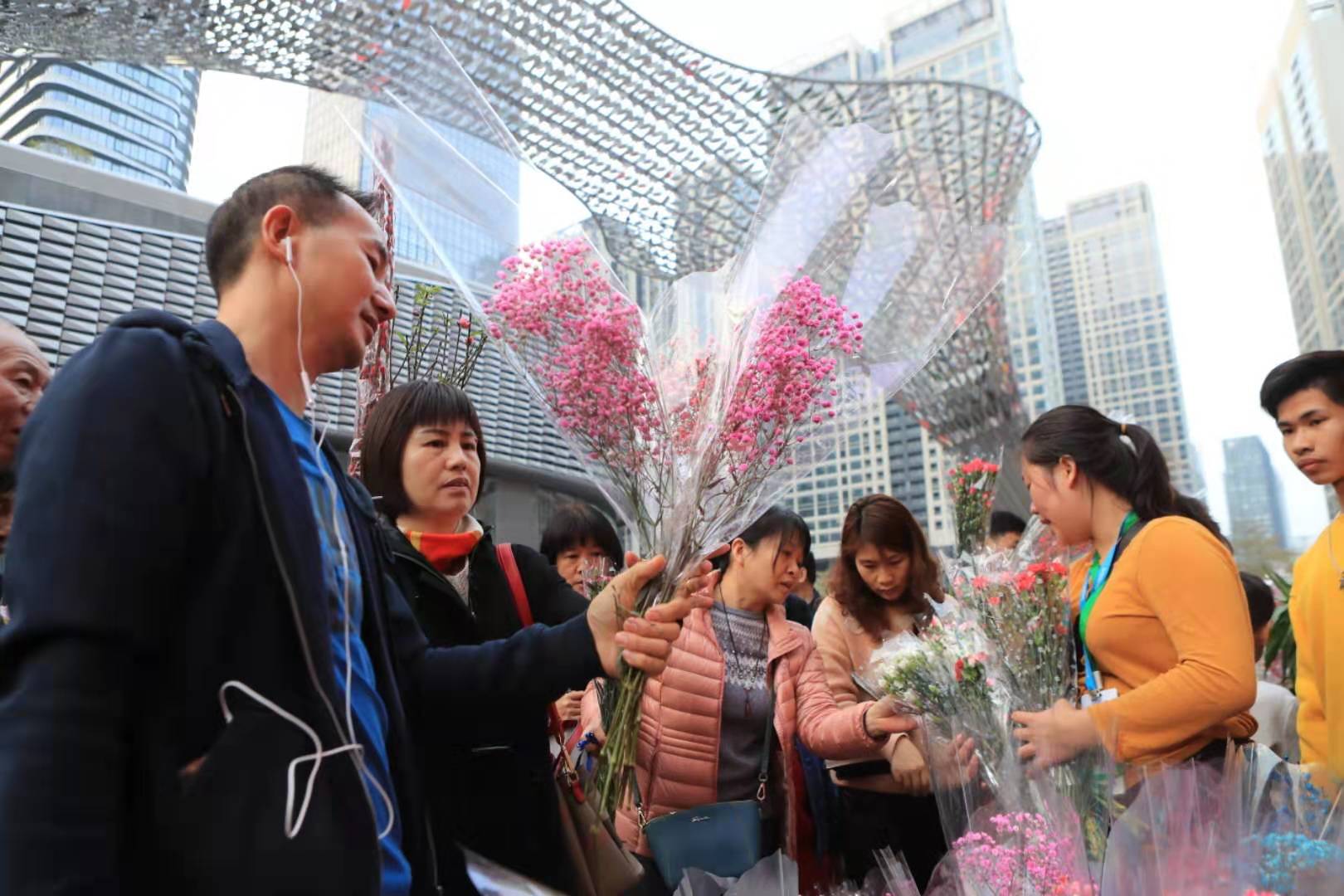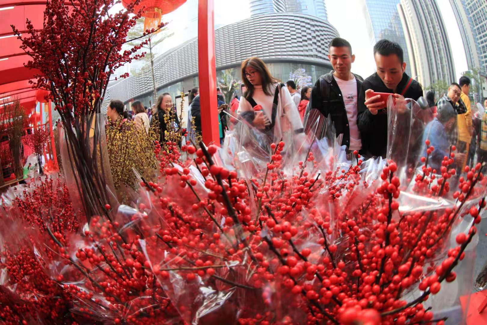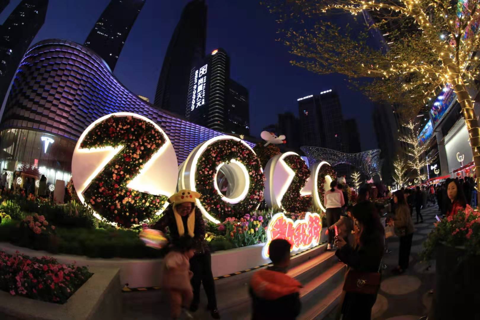 A myriad of residents and visitors in Shenzhen packed the pedestrian street outside One Palace, a large-scale commercial facility in Futian District, on Saturday for the 2020 Shenzhen Spring Festival Flower Fair.