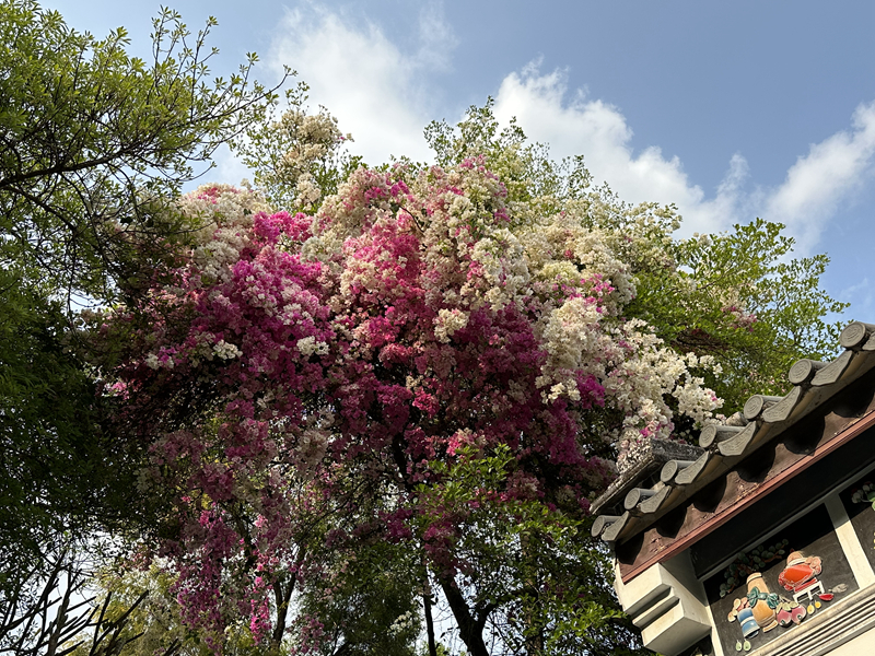 Marzo llega y los buganvillas florecen en el Parque Internacional de Jardines y Exposiciones de Shenzhen (深圳园博园), en el distrito de Futian, atrayendo a numerosos turistas.