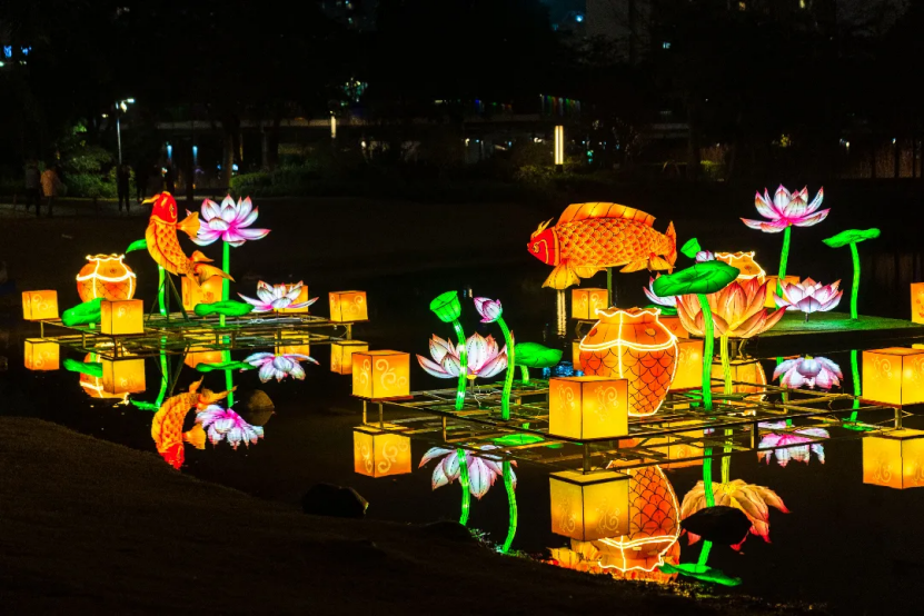 Combinando elementos de moda y tecnología, varias instalaciones de linternas adornan Huaqiangbei y el Parque Xiangmi. Estas innovadoras exhibiciones no sólo celebran festivales tradicionales, sino que también muestran creatividad moderna, haciendo que el entorno sea más vibrante y atractivo.