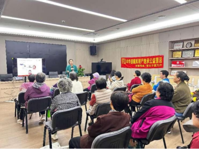 为有效维护社区老年人合法权益,保障老年人财产安全,近日,南园街道南华社区联合中华遗嘱库为社区长者开展“家庭财产继承常见风险与防范”普法宣传活动,旨在通过专业讲解和案例分析,帮助长者更好地理解并应对家庭财产继承中的潜在风险。