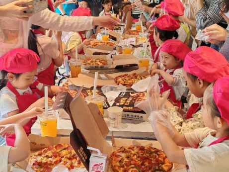 在达美乐比萨课堂,20位小小披萨师正将天马行空的创意揉进面团。专业烘焙师手把手教学,孩子们熟练地铺芝士、摆香肠。当烤箱门打开,金黄酥脆的披萨香气四溢,6岁的朵朵骄傲地把作品递给妈妈:“这是我做的限量款!”这场舌尖上的劳动课,让孩子们在烘焙香气中体会“一分耕耘一分甜”的真谛。