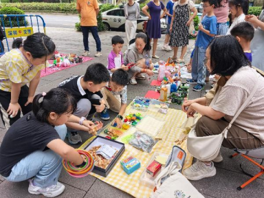 “走过路过不要错过!买二送一超划算!”福保社区党群服务中心前,热闹非凡的跳蚤市场里,30余个创意摊位鳞次栉比。孩子们化身小老板,用手绘海报招揽顾客,为闲置玩具设计趣味促销方案。“套圈游戏”摊位前,5岁的果果大声吆喝,成功售出商品后兴奋地记录收支。这场充满烟火气的财商启蒙课,让孩子们在讨价还价中理解价值交换,在交易实践中锻炼沟通能力。