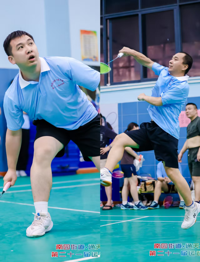 在随后的羽毛球比赛中,选手们灵活跑动、挥拍扣杀,展现出高超的球技和默契的配合。来自巴登社区的邱先生以精湛的网前小球和凌厉的扣杀连胜两局,顺利晋级。“平时就爱打羽毛球,这次能和邻居们一起比赛特别开心!”邱先生赛后兴奋地说道。赛事裁判员也表示,各项比赛不仅考验力量,更体现了团结协作的精神,完美契合了本届运动会“活力南园,奋进未来”的主题。