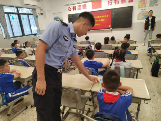 此外,南园街道还联动南园派出所在上步小学以直播形式同步开设主题班会课。课堂上,禁毒科普动画、反恐知识短片等一系列短视频接连播放,生动有趣的画面与情节让学生目不转睛,工作人员现场的精彩讲解让法律知识入脑入心。同时,班级屏幕滚动展示图文并茂的普法知识,将晦涩法律条文化身为简洁明了的小贴士。通过以多元化宣传形式,丰富了法治教育的载体与内涵,让学生在轻松愉悦的氛围中主动汲取知识,更在他们心中悄然播下尊法守法的种子,推动全体师生树立科学生活态度,使反诈、防欺凌、禁毒、反恐等主题教育走深走实。