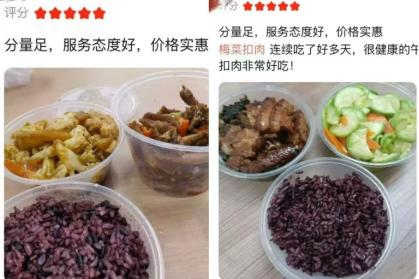 商家平台公告显示:线上线下同步菜品、6荤6素每日更新、明厨亮灶、现炒现送,让客户吃得放心。