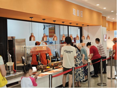 益田社区数字健康食堂于2024年1月投入运营,占地680㎡,每批次可容纳220人同时就餐,致力于进一步优化解决社区周边居民群体的日常就餐问题,提升公共服务供给品质,让辖区居民更有幸福感。“数字赋能”运营模式是该食堂的一大特色,为了深入感受“数字就餐”新体验,记者线下探访了益田社区数字健康食堂。
