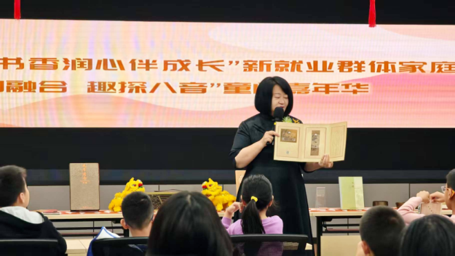 新春剪纸、小马摆件DIY、非遗竹编风铃等充满年味的手作环节。孩子们在品读经典中感受文字魅力,在动手创作里体验传统年俗乐趣。社区还为新就业群体代表发放电子读书卡,为参与家庭赠送阅读书包,并举办《八音的秘密》音乐主题童阅嘉年华,以贴心关怀与特色服务将新春祝福精准送达。