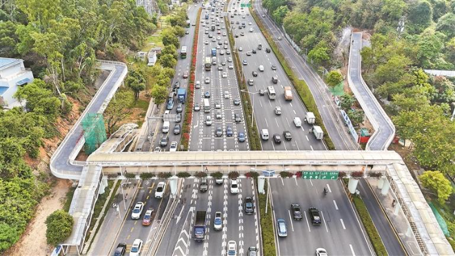 “周末可以来笔架山-银湖山公园citywalk了,沿着这条步道逛公园,实在是太方便了!”近日,王女士在行走步道的时候连连称赞道。 记者从深圳市交通运输局福田管理局获悉,笔架山-银湖山公园步道连通工程已于近日实现贯通,市民、游客可通过该步道在两座公园间便捷往来。 据介绍,为打造深圳人家门口的山海连城生活,深圳重点推进福田区中部“五园连通”。其中,笔架山-银湖山公园步道位于北环珍珠岭天桥两侧,为“五园连通”跨北环大道断点建设项目,南接笔架山公园手作步道,北接银湖山郊野公园手作步道。其中南侧钢栈桥总长为107.3米,北侧钢栈桥总长为80米,宽度均为4.5米。 深圳市交通运输局福田管理局积极推进笔架山-银湖山公园步道连通工程建设,2023年9月22日,项目获得立项批复,并于2023年11月17日获得总概算批复。近日,该工程南、北侧钢栈桥主体及桥面铺装已经完成并开放通行,市民、游客可通过该步道在笔架山-银湖山公园间往来休憩。 深圳市交通运输局福田管理局相关负责人透露,为打造无障碍出行环境,下一步,将加快推进垂直电梯等附属设施的建设,力争在6月底前竣工,为市民、游客提供更为舒适便捷的出行条件。