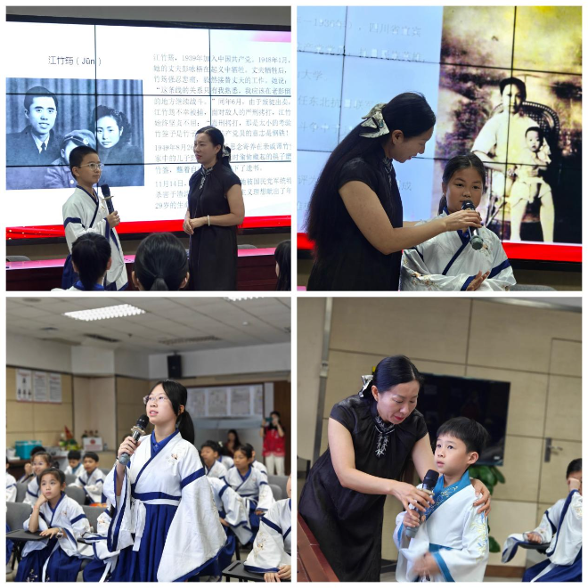 红色家书声声响,革命精神代代传。国学老师首先为孩子们讲解了红色家书的来源与意义,一封陈旧的家书,文字虽然朴素无华,但字里行间却流露出革命者坚定的信仰和不屈不挠的精神,真实地反映了革命者在斗争中的艰辛历程和对革命事业的执着追求。随后,国学老师带领大家品读了赵一曼、江竹筠和谢晋元等革命烈士英勇就义前写下的滚烫家书,并为孩子们讲解红色家书背后鲜为人知的故事,重温革命历史,体会家国情怀。这些信件中的革命者,他们为了国家和民族的利益,不惜牺牲自己的生命和家庭,这种精神值得我们永远铭记和学习。最后,国学老师带领小小朗读者们诵读红色经典,感受革命先辈们的事迹,传承红色家风。