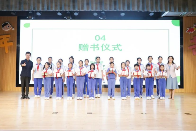 当日14点,典礼拉开帷幕。校长臧秀霞发表了热情洋溢的致辞。随后,深圳广电集团知名主持人海亮深情演绎《卖火柴的小女孩》经典篇章,以独特的嗓音和充沛的情感,带领大家沉浸在故事之中。赠书环节中,校长将一本本承载智慧与梦想的书籍赠予班级代表。记者在现场看到,学生们纷纷在签名墙前郑重签名,许下阅读誓言。活动的高潮当属阅读课的正式开启,学生们在老师的引领下,运用新习得的阅读策略,沉浸在书本世界,享受阅读带来的心灵滋养。