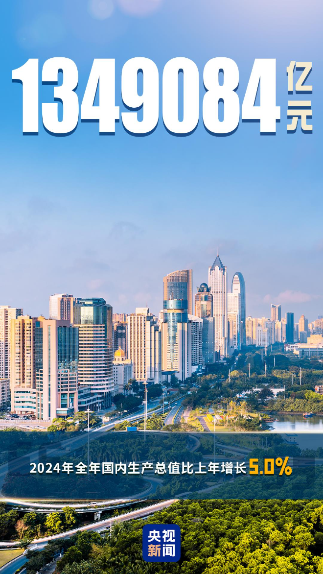 134.9万亿元,这是国家统计局最新公布的2024年中国经济总量,与2023年相比,增长了5%。