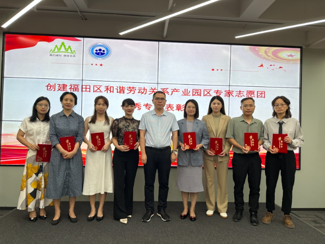 活动对为福田区劳动关系和谐稳定作出卓越贡献的30位专家志愿团优秀专家进行了表彰。刘娟、唐薇薇、彭永江等优秀专家获此殊荣,原福田区人力资源局相关领导及协会专家为他们颁发了荣誉证书。