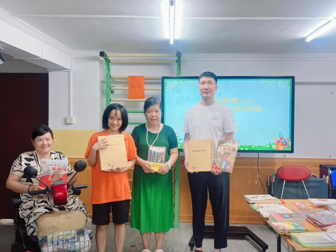 9月12日,第二场活动在温馨的氛围中展开。活动伊始,举行了简短而意义非凡的捐书仪式。由福田区残联支持的40本精选书籍正式入驻莲花北康复站。书籍涵盖盲文读物、红色经典绘本等多类别,兼顾不同群体的阅读需求,为社区居民提供触手可及的精神食粮。
