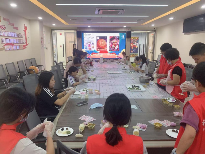 作为中秋的“重头戏”,亲子手工DIY月饼区格外热闹。社区工作人员不仅介绍了中秋节的由来与习俗,还现场示范了月饼的制作步骤。揉皮、包馅、压模……家长和孩子分工协作,不一会儿,一个个小巧精致的月饼便跃然桌上。居民刘女士笑着说:“第一次和孩子一起做月饼,不仅学会了手艺,更感受到了浓浓的节日气氛和邻里温情。”