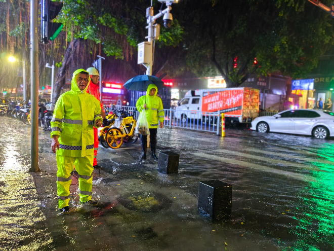 此次暴雨降雨量超强、持续时间超长。7日这一夜,福田区许多人无眠,相关部门第一时间组织全员投入,保持24小时在岗持续奋战,全方位做好强降雨防御工作,确保市民群众生命安全,尽最大可能降低财产损失。
