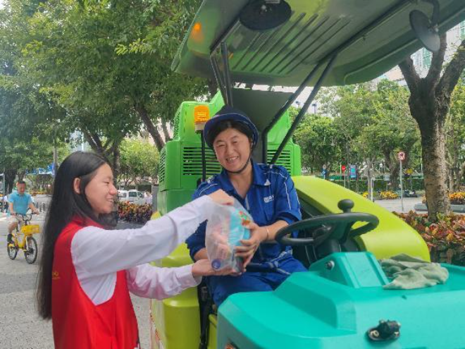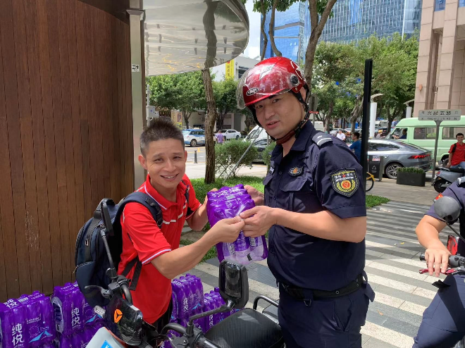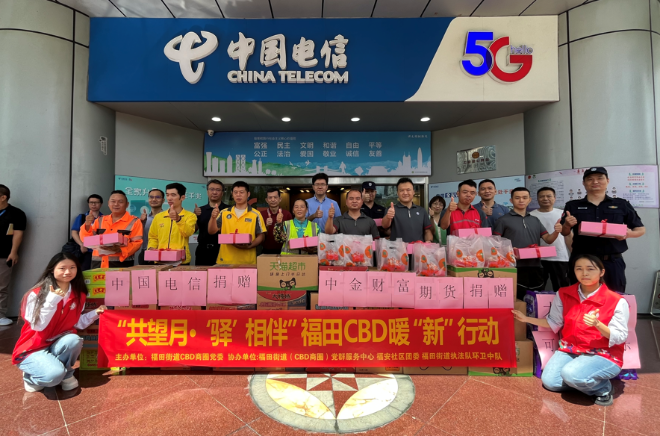 9月12日上午,福田区福田街道CBD商圈党委联合福田街道(CBD商圈)党群服务中心、福安社区团委、福田街道执法队环卫中队携手中国电信、中金财富期货、广东太古可口可乐等爱心企业,举办了CBD公益行——“共望月•‘驿’相伴”福田CBD暖“新”行动暨暖蜂驿站宣传活动,向新就业群体和户外工作者传递城市温度。