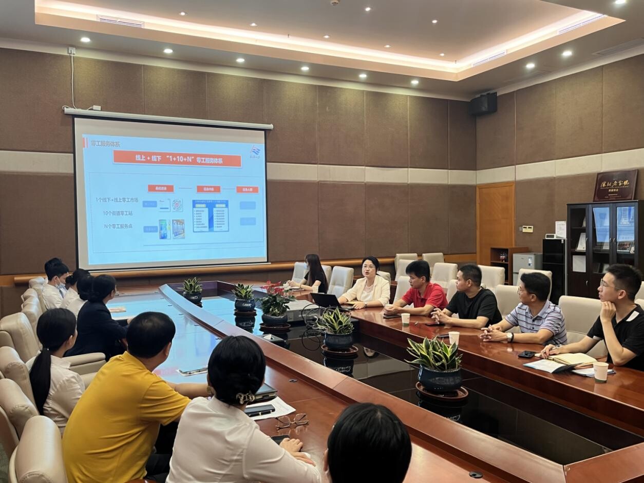 荣超物业公司的负责人介绍了公司发展历程、主要成就、业务规模、服务对象等情况,同时反馈了目前的用工需求和所管理大厦入驻企业遇到的一些实际问题,并希望进一步了解政府所能提供解决用工需求的渠道及相关惠企政策。人力中心工作人员就企业招工、用工等政策给予解答,向企业介绍目前正在开发运营的“福田智慧零工市场”项目,邀请企业招聘负责人加入区人力资源市场招聘群,前往线上零工平台进行注册发布岗位,解决企业目前的用工问题,并提出在国际商会中心建立零工服务站点的设想,在提高宣传力度的同时吸引中心区更多的企业参与。会上专业运营公司为企业进行了全方位项目介绍及平台操作步骤展示。