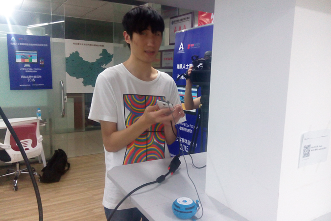 视障人士在体验“福田政府在线”WAP版和手机APP服务