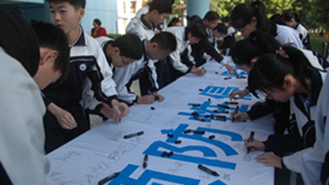 各校号召师生在“珍爱生命 拒绝性侵”的横幅上签名,强化预防性侵犯的意识。