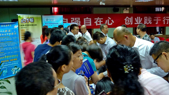 2012年6月8日,南园街道创业讲堂暨创业项目推介会上,有创业意愿人员向各创业项目方咨询创业相关具体事项。