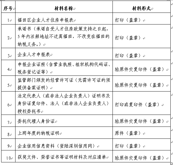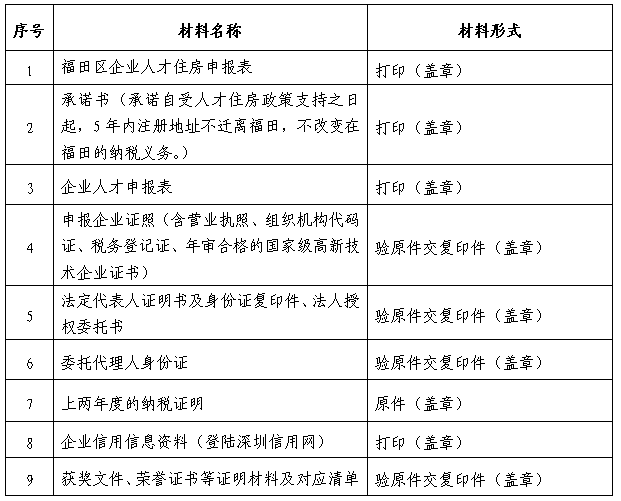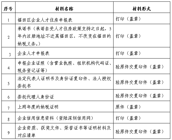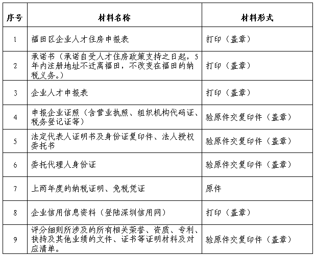 1、租赁合同(租赁合同的年限应符合《深圳经济特区房屋租赁条例》的相关规定,且在合同中明确规定租赁房屋在回购之日或承租人终止劳动合同之日起自然终止合同,承租人一月内搬离等事项。);