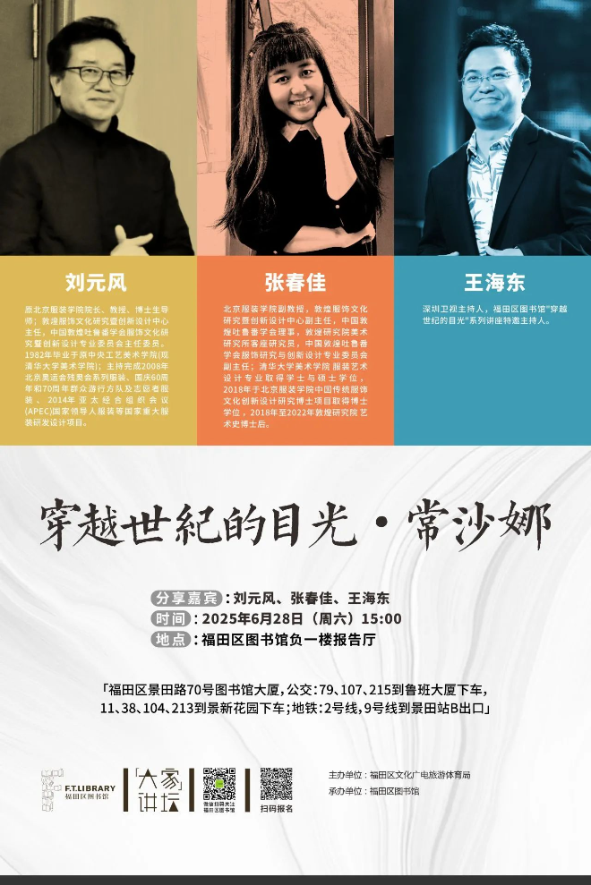 活动嘉宾:刘元风,原北京服装学院院长、教授、博士生导师;敦煌服饰文化研究暨创新设计中心主任,中国敦煌吐鲁番学会服饰文化研究暨创新设计专业委员会主任委员。1982年毕业于原中央工艺美术学院(现清华大学美术学院);主持完成2008年北京奥运会残奥会系列服装、新中国成立60周年和新中国成立70周年国庆群众方队及志愿者服装、2014年亚太经合组织会议(APEC)国家领导人服装等国家重大服装研发设计项目。