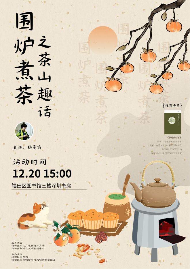 活动内容:茶事既是岁时农耕的实践,亦是心灵栖居的方式。在秋冬时节,跟着杨老师走进茶山与茶务的趣事中,以一盏茶汤安顿身心,于四季更迭里品味 “人间好时节”的永恒诗意。
