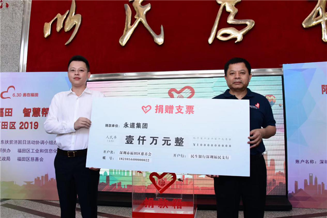 据悉,在福田区2019年“广东扶贫济困日”启动仪式上,区工商联常委单位永道集团向福田区慈善会捐赠1000万元,专门用于支持贫困地区教育发展和创新创业。