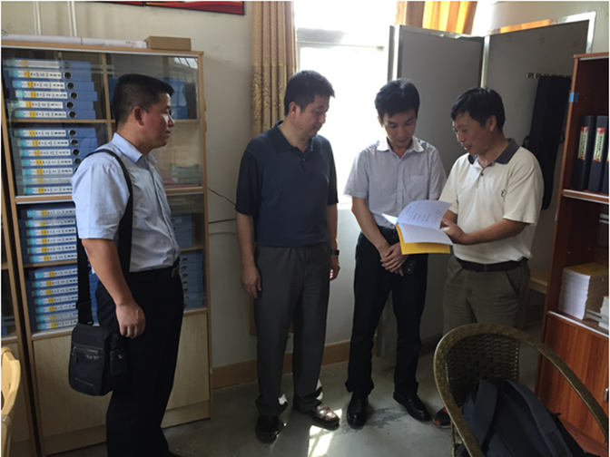 8月8日下午2时许,郑志荣和李喜亮同志听取了驻村扶贫干部邵德斌队长的工作汇报,查阅相关档案资料了解情况。2时30分,郑志荣和李喜亮同志等一行与东水镇党委委员张国燕、副镇长叶见生、驻村干部邵德斌以及六联村党支书骆胜勤等村干部在村委会议室召开座谈交流会。