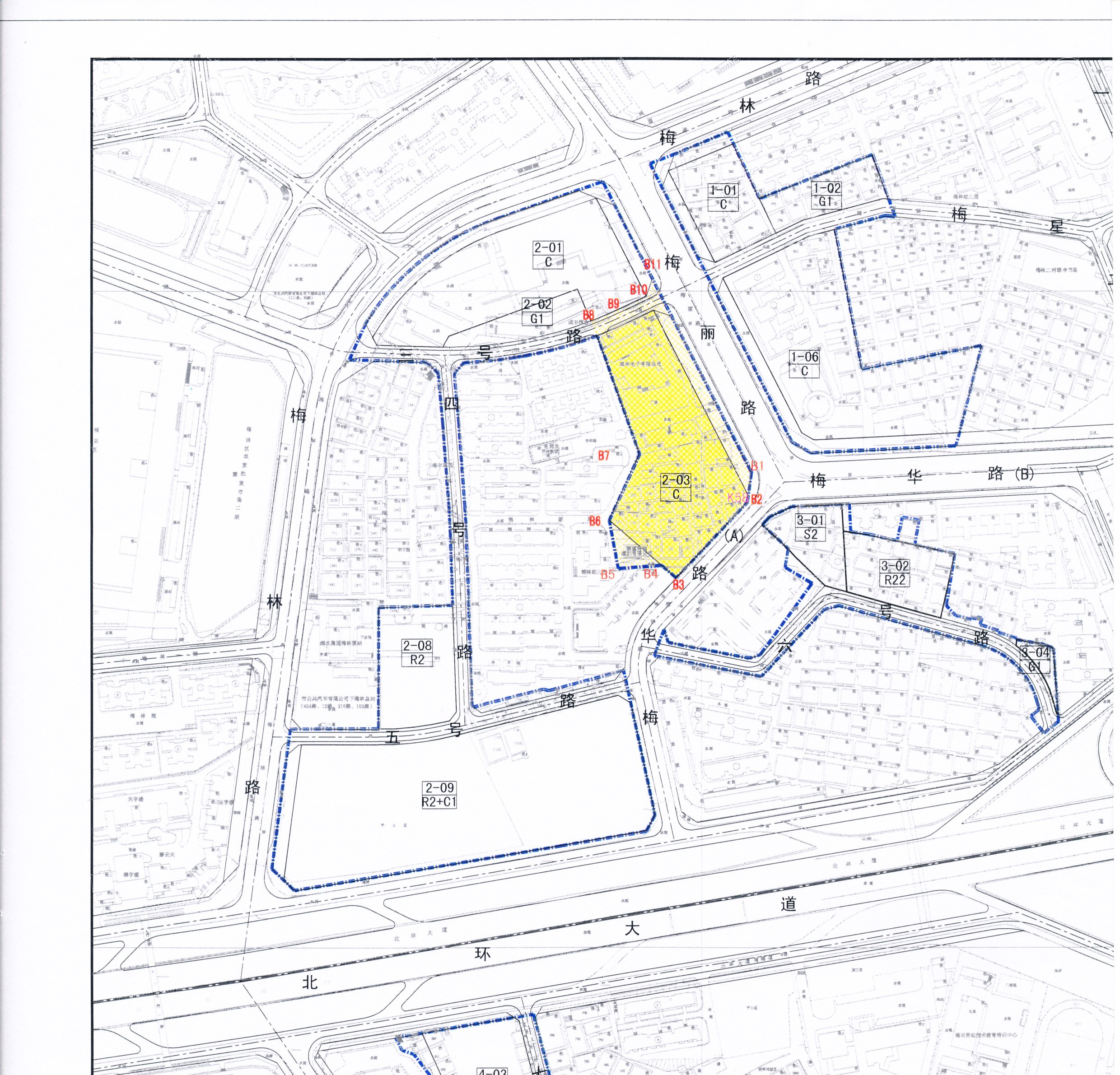 下梅林二期(2-03地块)城市更新单元位于深圳市福田区下梅林梅华路与梅丽路交汇处,该城市更新单元专项规划已经深圳市规划和国土资源委员会批复(深规土函〔2010〕578号),项目拆迁用地面积15102平方米,开发建设用地面积12263平方米。(详见附件)