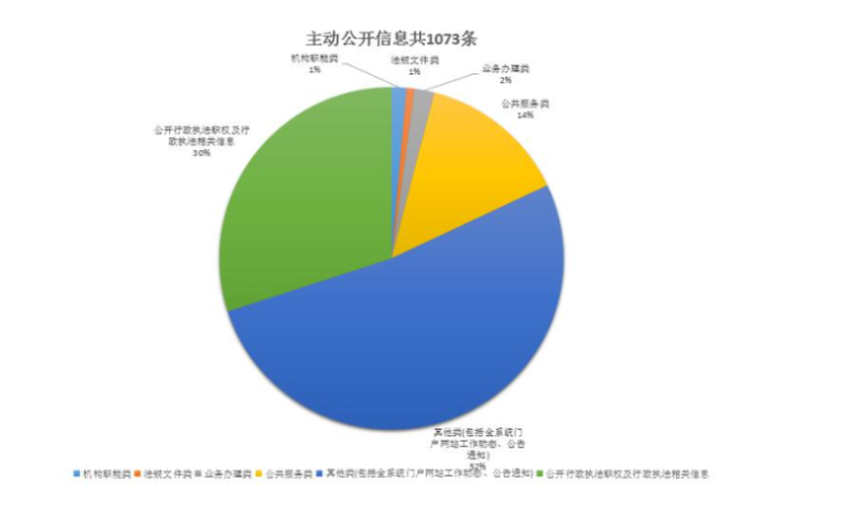 1.区卫生计生系统信息公开情况。经统计截至2018年底,福田区卫生计生系统全年主动公开信息共1073条,其中,机构职能类信息15条,占1%;法规文件类信息8条,占0.7%;业务办理类20条,占1%;公共服务类150条,占13%;其他类(包括全系统门户网站工作动态、公告通知)558条,占52%。公开行政执法职权及行政执法相关信息322条,占30%。