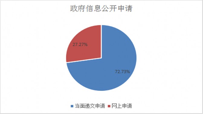 2018年,本局共受理政府信息公开申请11件,其中当面递交申请8件,占72.73%;网上申请3件,占27.27%。