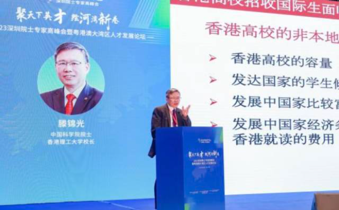 中国科学院院士、香港理工大学校长滕锦光以《发挥香港优势,为大湾区建设国际教育中心》为题发表观点,建议在北部都会区建设大学城,将香港打造成为国际教育中心,加强与粤港澳大湾区其他城市的合作,助力粤港澳大湾区建设。