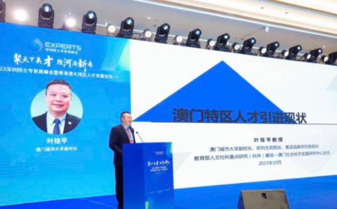 澳门城市大学副校长叶桂平以《澳门特区人才引进现状》为题发表演讲,讲述了澳门特区人才引进的“前世今生”,从澳门特区人才现状入手,分析现行人才机制存在的主要问题,进而详细阐述了澳门特区的引才新政,为粤港澳大湾区人才创新发展带来了新思路新经验。