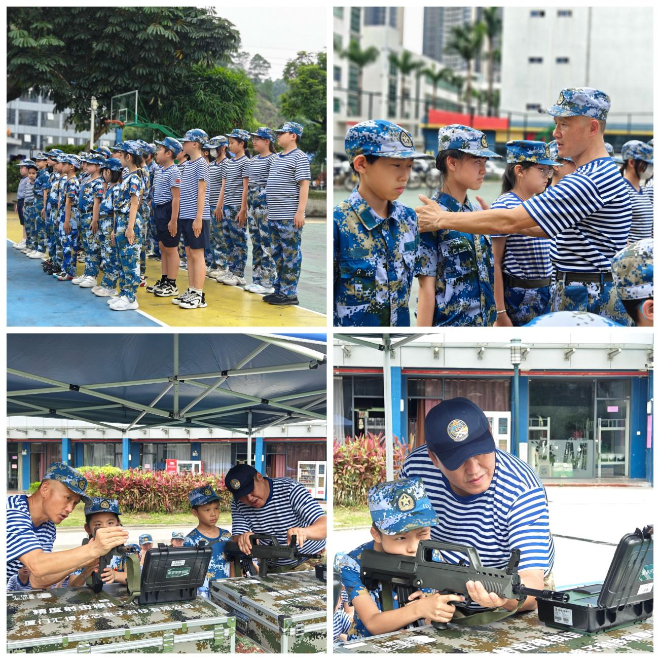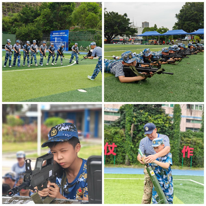 本次强国军事训练营不仅带来了站军姿,敬军礼和队列训练,同时还让孩子们体验了一回“冲锋陷阵的真英雄”,孩子们通过体验三姿射击、百米爆瓶和火箭筒发射,学习到了基本的射击技巧和火箭筒的使用方法,并且通过实战演练,让孩子们将心中最酷的军人形象演绎出来。除此之外,教官还带领孩子们学习军体拳,孩子们昂首挺胸,时刻准备着马步、弓步、冲拳、勾拳,一招一式有模有样,每个动作都展现出蓬勃的青春力量。