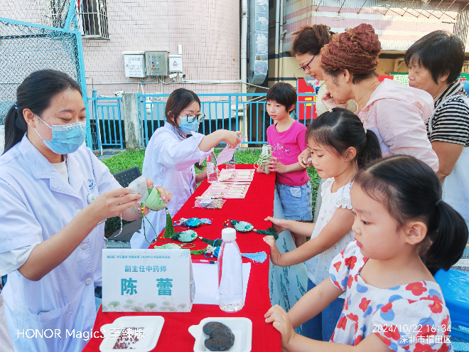 广州中医药大学深圳医院(福田)作为承办单位,心血管病科、脾胃病科、内分泌科、肺病科、骨伤科、妇科、推拿科、肾病科、脑病科、治未病科、康复科、肿瘤科等多学科20余名专业技术人才参加此次活动,这些人才均为获得省、市、区等各级各类高层次人才称号,以及入选各类人才培养项目的专业技术人才,他们走出医院、来到社区,为居民们提供面对面的义诊和中医适宜技术体验服务,不仅为居民们答疑解惑,还传授了许多养生“秘籍”,从饮食调理到运动保健,让居民们收获颇丰。