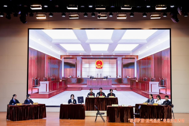 明德实验学校(集团)香蜜校区学生演出了情景剧《追光少年的回归》,现场进行模拟法庭。情景剧展示了未成年人在面对校园欺凌问题时的困惑和挣扎,引发了观众的深刻思考。模拟法庭彰显了司法体系的保护效能,让孩子在观看中了解法律的严肃性和权威性。