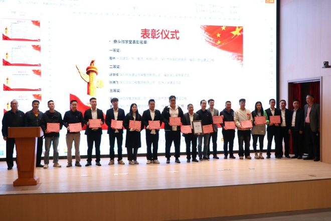署领导苏济成宣读了福田区建筑工务署第二党支部2024年“两个课堂”年度表彰决定及获奖名单,李辉球宣读了关于表彰深圳金融科技研究院项目2024年度先进单位及个人的决定。会议为获奖单位及个人颁发荣誉证书并致以热烈祝贺,鼓励他们再接再厉,继续为建设美好福田、建设美丽深圳作出更大贡献。