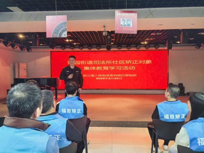 近日,南园司法所组织辖区矫正对象在南园街道文体中心二楼多功能活动室开展“走好向上人生路”人生规划教育学习活动,鼓励引导社区矫正对象树立正确的人生观和价值观,积极面对生活,重新融入社会。