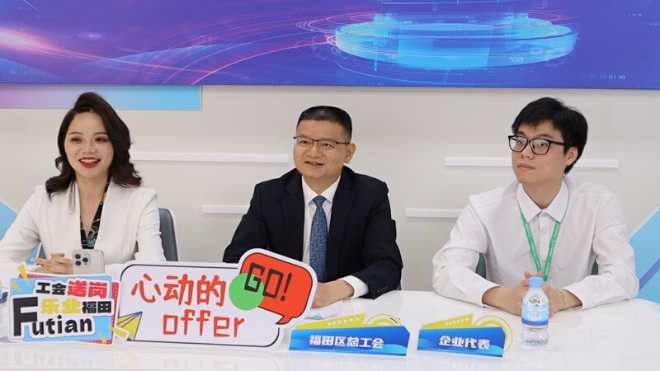 3月28日上午,深圳市福田区总工会举办了全市首场“工会帮就业·工会主席直播带岗”活动。本次活动吸引了15000 余人次在线参与,通过“云端双选”精准对接538个优质岗位,为求职者搭建起与名优企业直接对话的数字化桥梁。