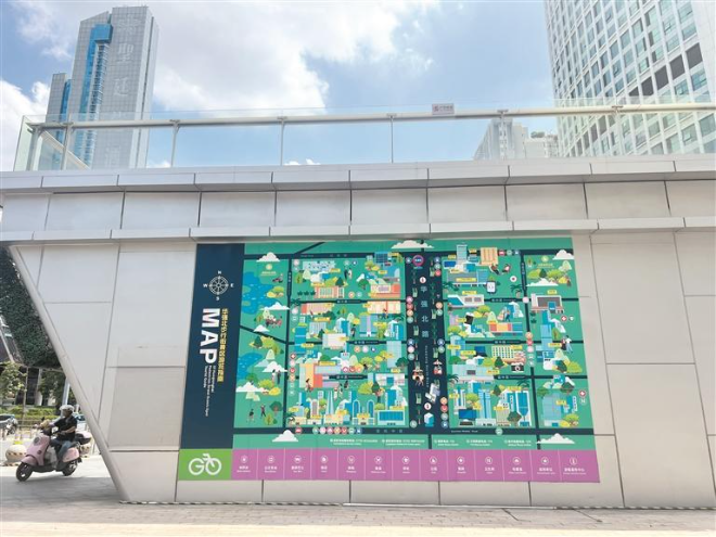 华强北步行街每个地铁口都设有巨幅双语地图。
