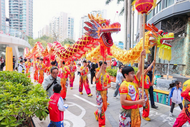 随后龙狮队伍开始巡游,随着阵阵锣鼓声,龙狮队伍途经新洲河栈道、新洲同创汇等进行采青拜年,吸引了众多居民驻足观赏,感受欢乐年味,也为城市地标增添了一抹别样的风采。