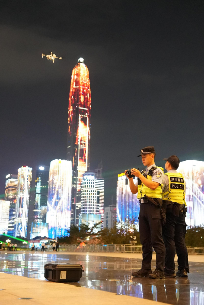 无人机表演、灯光秀表演、莲花山和笔架山徒步……国庆假期,位于深圳中心城区的福田区迎来了大量游客参观游玩。为护航游客出行安全,福田公安织密巡逻防线提升见警率,强化安全引导便捷群众服务,而一支特殊的“空中”小队也时刻在线,成为护航国庆假期的重要力量。